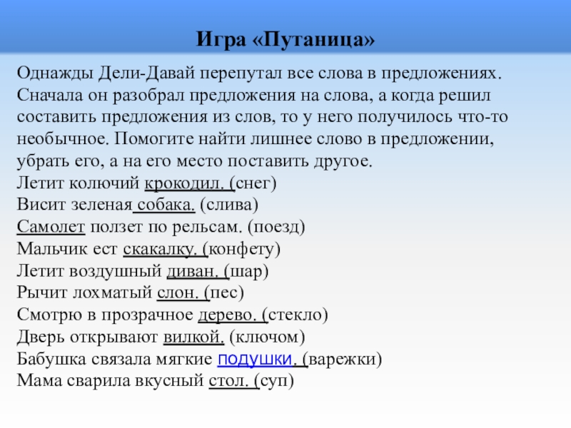 Однажды Дели-Давай перепутал все слова в предложениях.