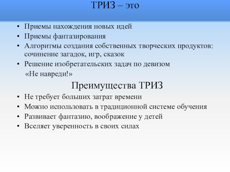 Преимущества ТРИЗ