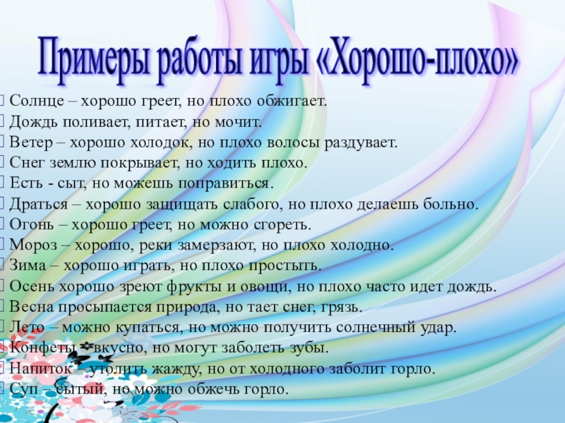 Примеры работы игры «Хорошо-плохо»