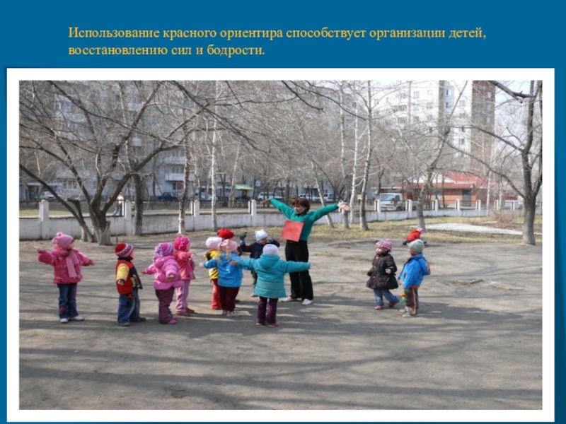 Слайд 9Использование красного ориентира способствует организации детей, восстановлению сил и бодрости.