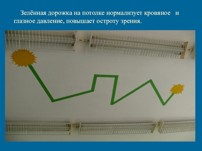 Слайд 7 Зелённая дорожка на потолке нормализует кровяное и глазное