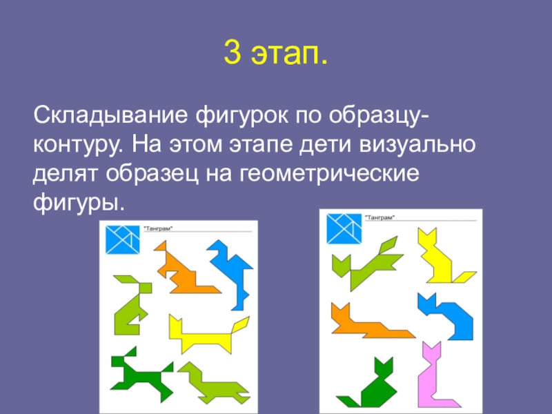 Складывание фигурок по образцу-контуру. На этом этапе дети визуально делят