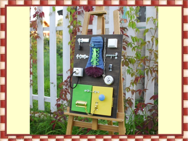 На данной доске располагаются дверки с замочками, и различными бытовыми