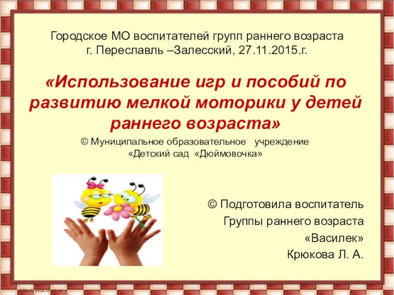 Слайд 1Городское МО воспитателей групп раннего возраста