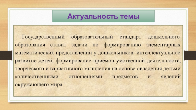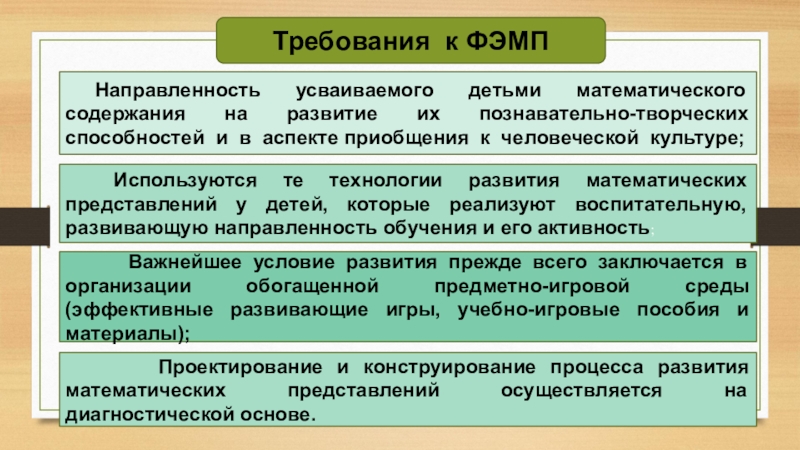 Используются те технологии развития математических представлений у детей, которые реализуют воспитательную, развивающую направленность обучения и его активность;