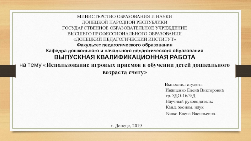Гипотеза исследования: использование игровых методик в процессе обучения способствуют повышению уровня сформированности элементарных математических представлений у дошкольников.