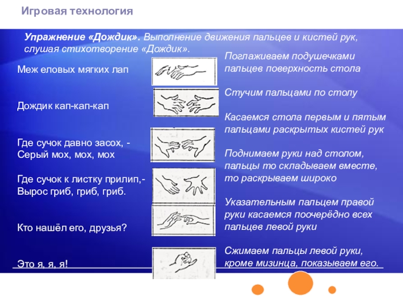 Упражнение «Дождик». Выполнение движения пальцев и кистей рук, слушая стихотворение