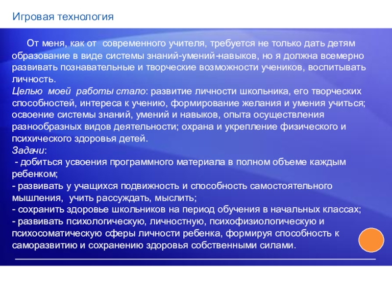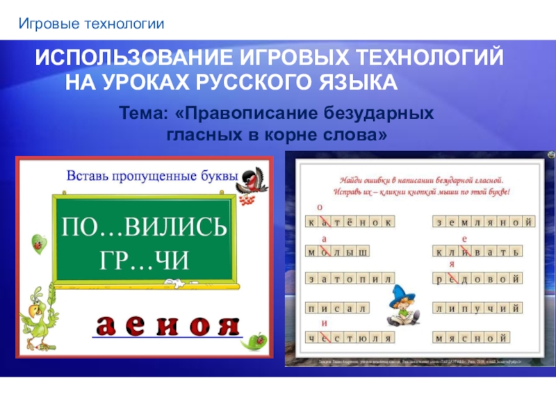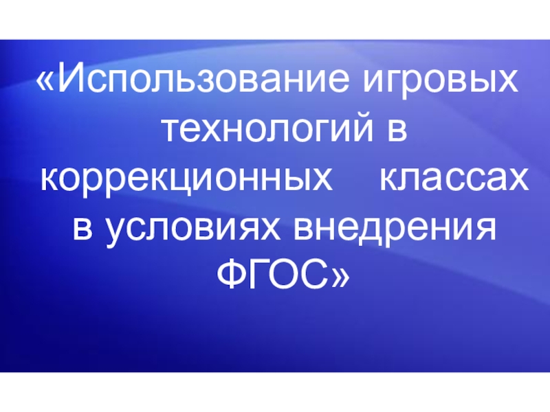 Слайд 2«Использование игровых технологий в коррекционных классах в условиях внедрения ФГОС»