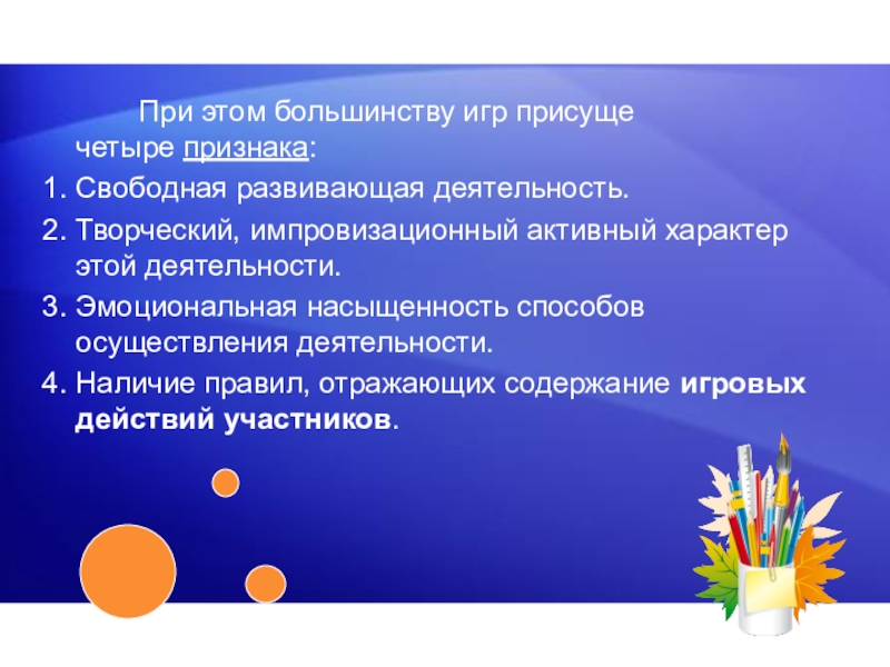 4. Наличие правил, отражающих содержание игровых действий участников.