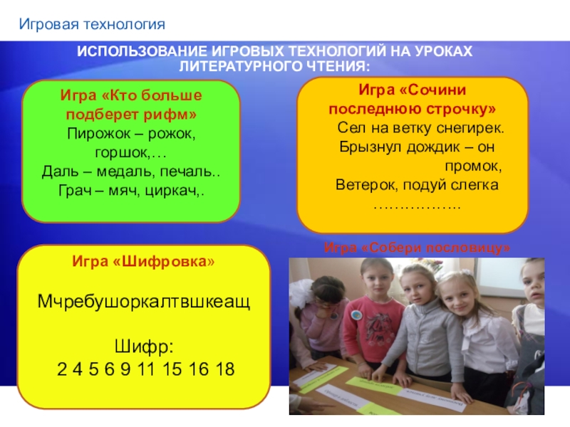 ИСПОЛЬЗОВАНИЕ ИГРОВЫХ ТЕХНОЛОГИЙ НА УРОКАХ ЛИТЕРАТУРНОГО ЧТЕНИЯ:
