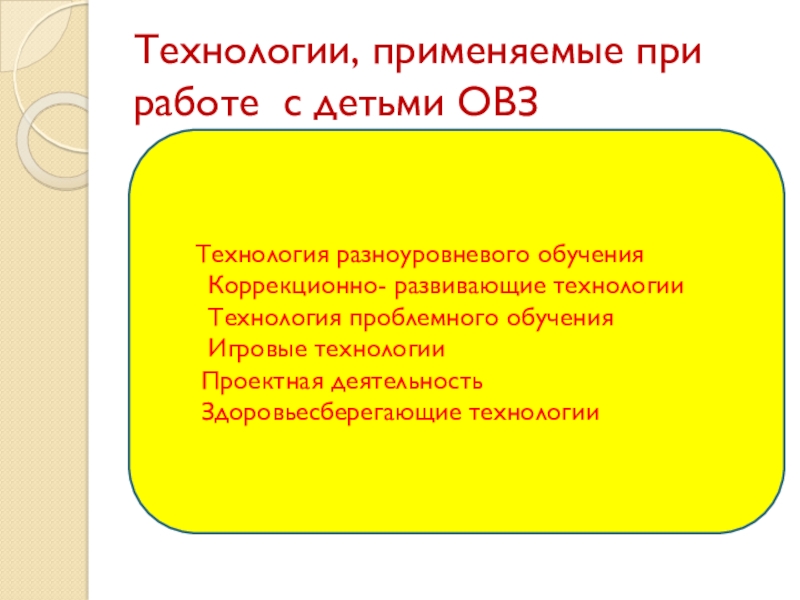 Слайд 3Технологии, применяемые при работе с детьми ОВЗ