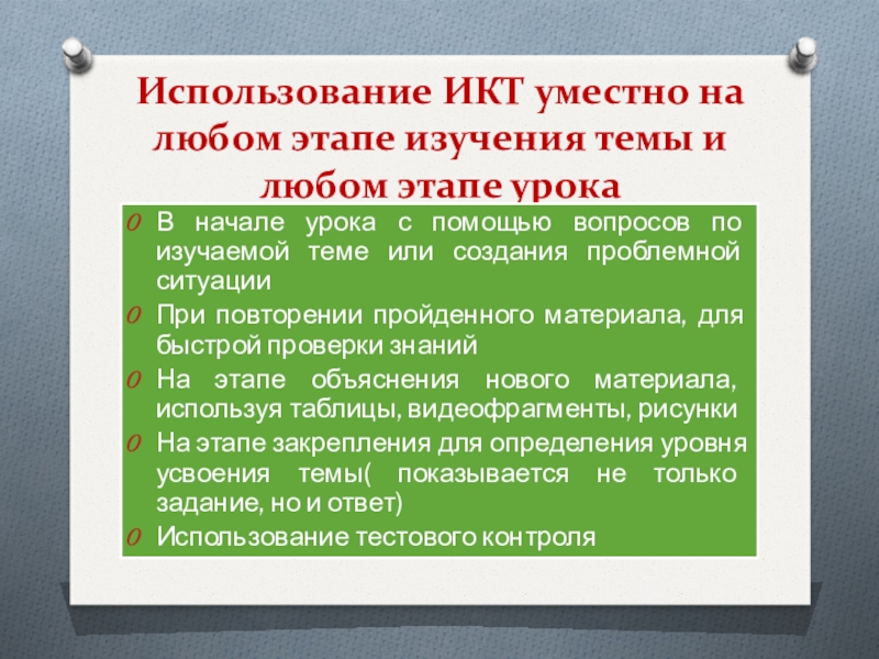 На этапе закрепления для определения уровня усвоения темы( показывается не только задание, но и ответ)
