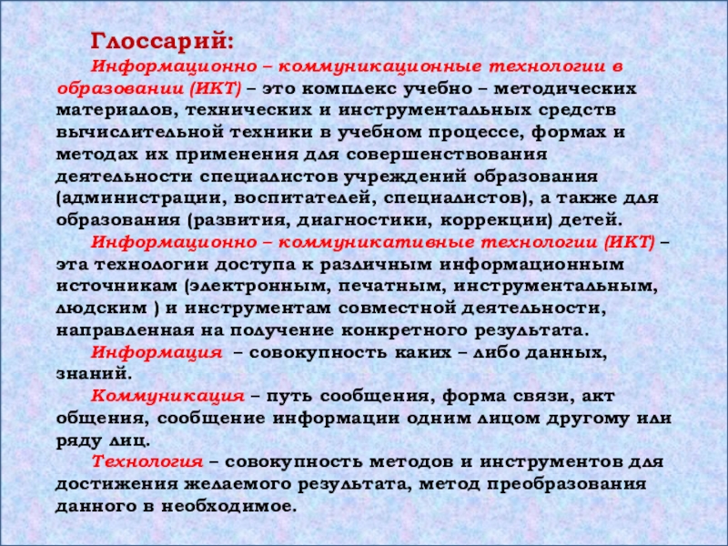 Информационно – коммуникационные технологии в образовании (ИКТ) – это комплекс учебно