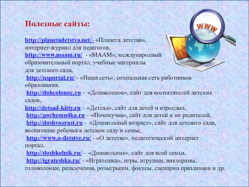 http://www.o-detstve.ru/ - «О детстве», педагогический интернет