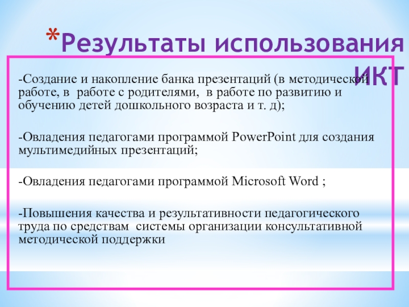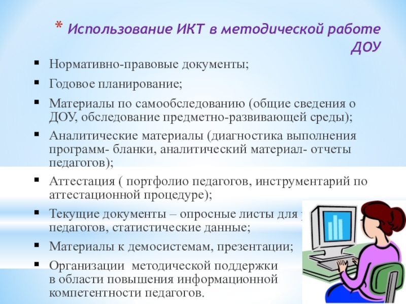 Слайд 4Использование ИКТ в методической работе ДОУ
