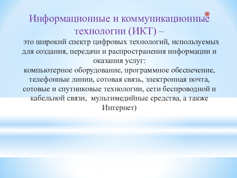 Слайд 2Информационные и коммуникационные технологии (ИКТ) –