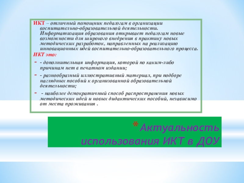 Слайд 9Актуальность использования ИКТ в ДОУ