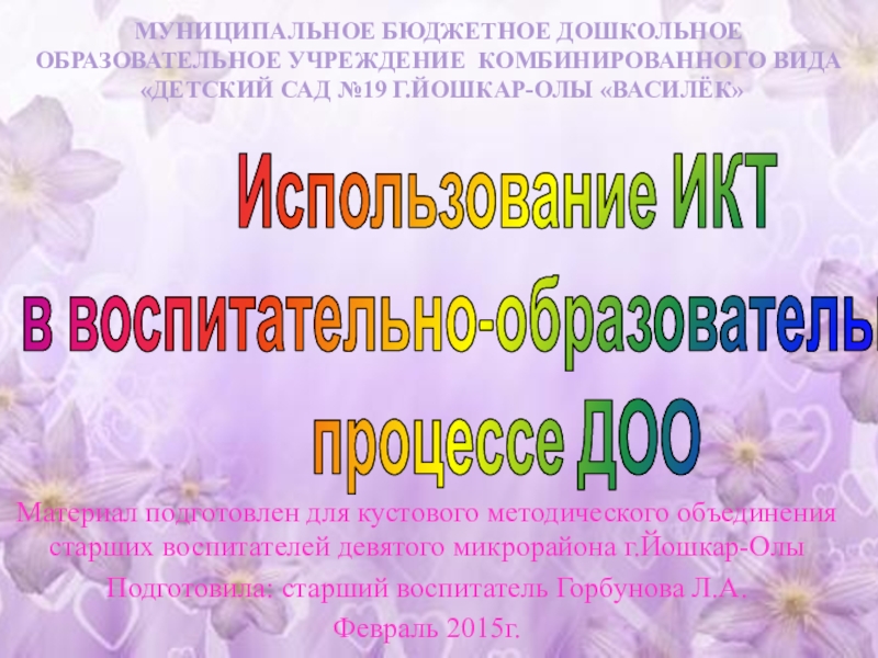 Материал подготовлен для кустового методического объединения старших воспитателей девятого микрорайона г.Йошкар-Олы