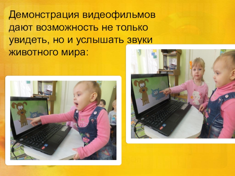 Слайд 5Демонстрация видеофильмов дают возможность не только увидеть, но и услышать звуки