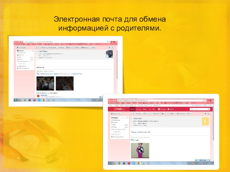 Слайд 15Электронная почта для обмена информацией с родителями.