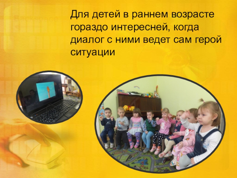 Для детей в раннем возрасте гораздо интересней, когда диалог с ними ведет сам герой ситуации