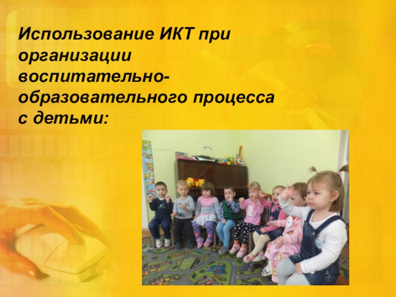 Слайд 3Использование ИКТ при организации воспитательно-образовательного процесса с детьми: