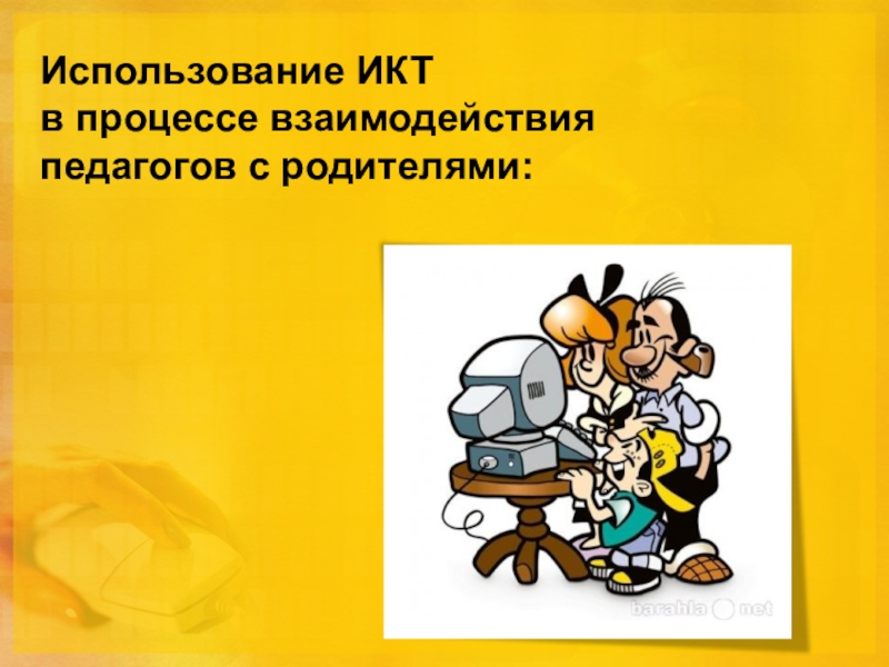 Слайд 13Использование ИКТ в процессе взаимодействия педагогов с родителями: