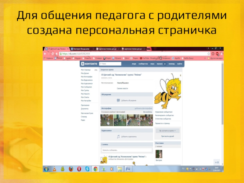 Слайд 14Для общения педагога с родителями создана персональная страничка