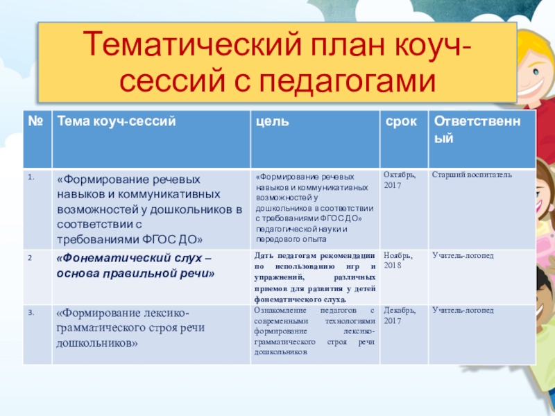 Коуч – тренеры: учитель-логопед, старший воспитатель;