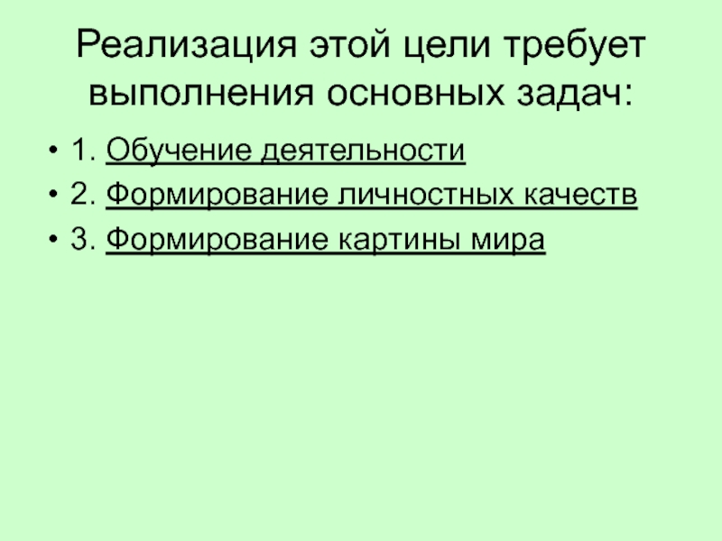 Слайд 4Реализация этой цели требует выполнения основных задач: