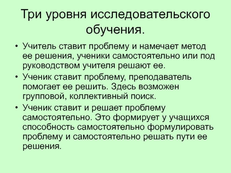 Слайд 19Три уровня исследовательского обучения.
