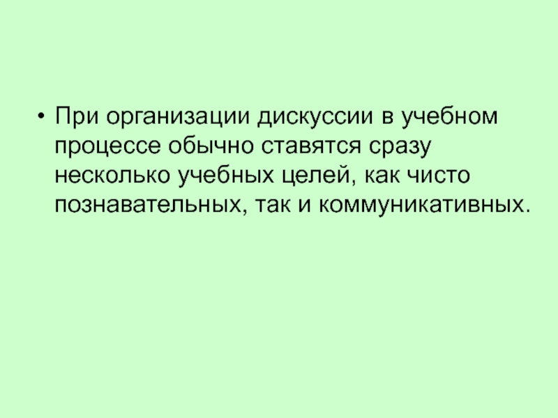При организации дискуссии в учебном процессе обычно ставятся сразу несколько учебных