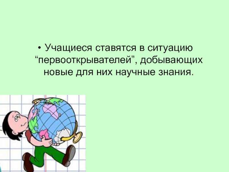 Учащиеся ставятся в ситуацию “первооткрывателей”, добывающих новые для них научные знания.