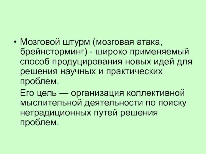 Мозговой штурм (мозговая атака, брейнсторминг) - широко применяемый способ продуцирования новых идей