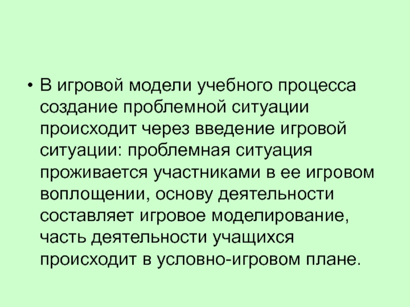 В игровой модели учебного процесса создание проблемной ситуации происходит через введение