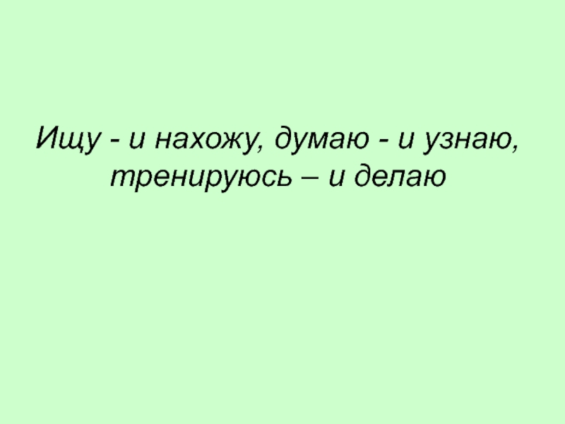 Слайд 2Ищу - и нахожу, думаю - и узнаю, тренируюсь – и