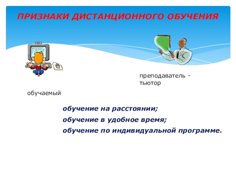 Слайд 16ПРИЗНАКИ ДИСТАНЦИОННОГО ОБУЧЕНИЯ