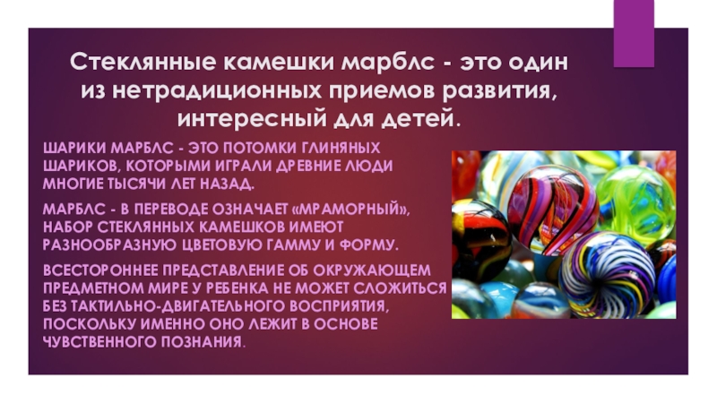 Эстетическая привлекательность марблс вызывает интерес у современных детей, несмотря на богатый выбор новейших, высокотехнологичных игрушек.