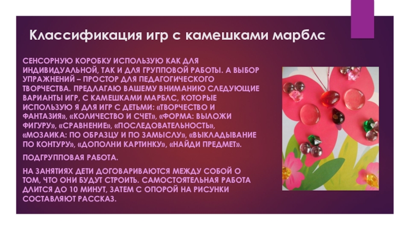 Красота камешков завораживает настолько, что и взрослым, и детям хочется к ним прикоснуться, подержать их в руках, поиграть с ними.
