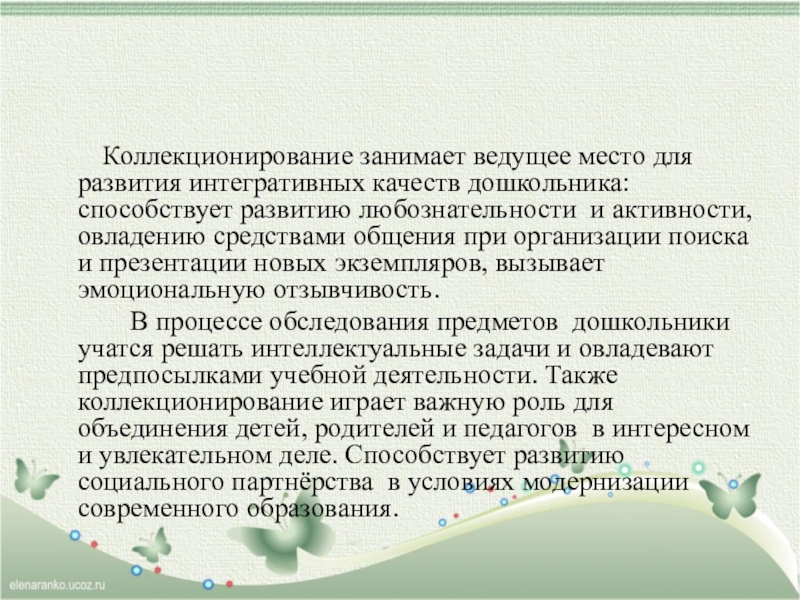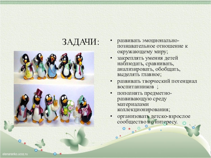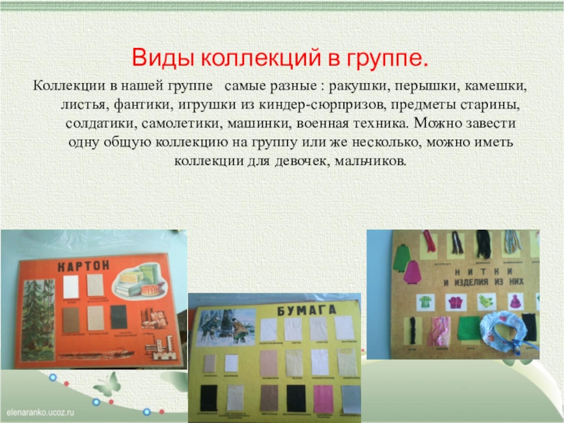 пополнять предметно-развивающую среду материалами коллекционирования;