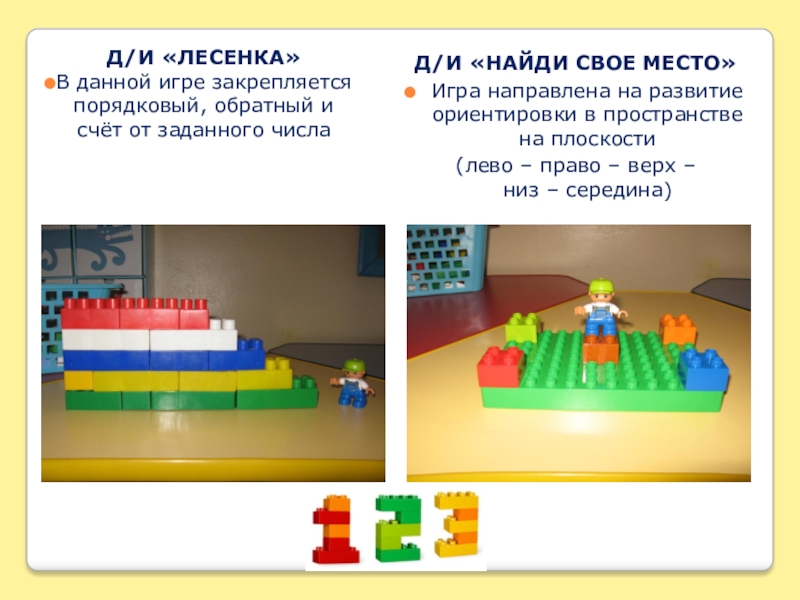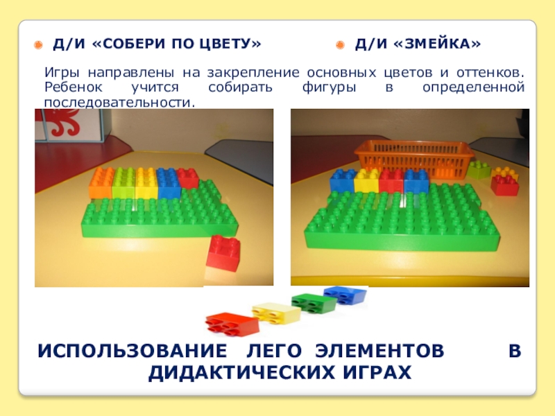 Слайд 28ИСПОЛЬЗОВАНИЕ ЛЕГО ЭЛЕМЕНТОВ В ДИДАКТИЧЕСКИХ ИГРАХ