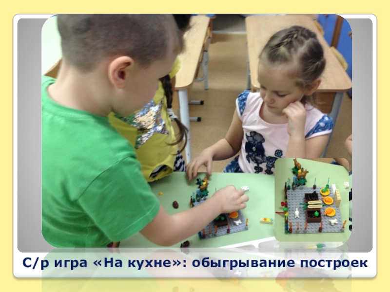 Слайд 15С/р игра «На кухне»: обыгрывание построек