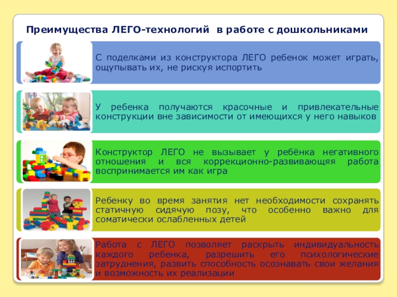 Слайд 7Преимущества ЛЕГО-технологий в работе с дошкольниками