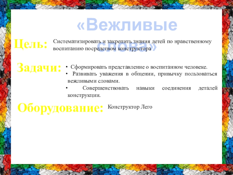 Систематизировать и закрепить знания детей по нравственному воспитанию посредством конструктора