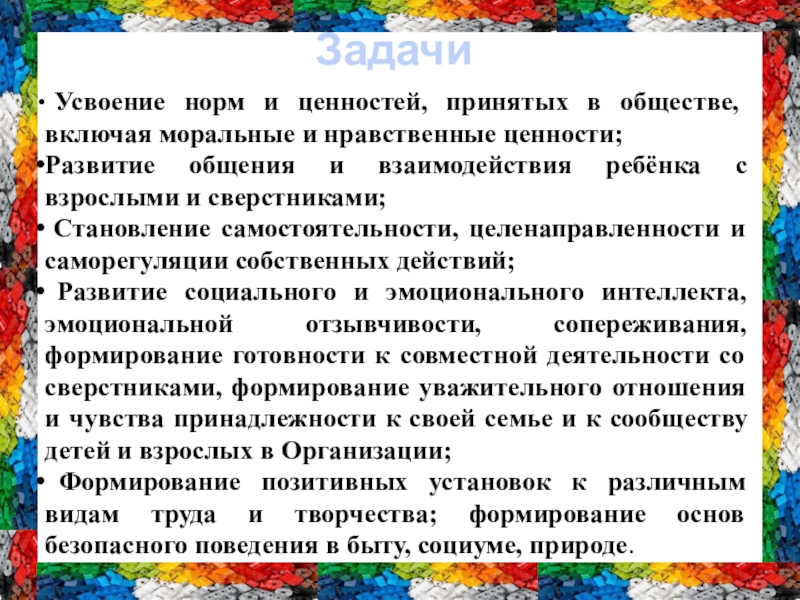 Усвоение норм и ценностей, принятых в обществе, включая моральные и нравственные ценности;