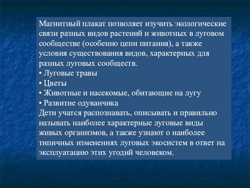 Слайд 10Магнитный плакат позволяет изучить экологические связи разных видов растений и животных