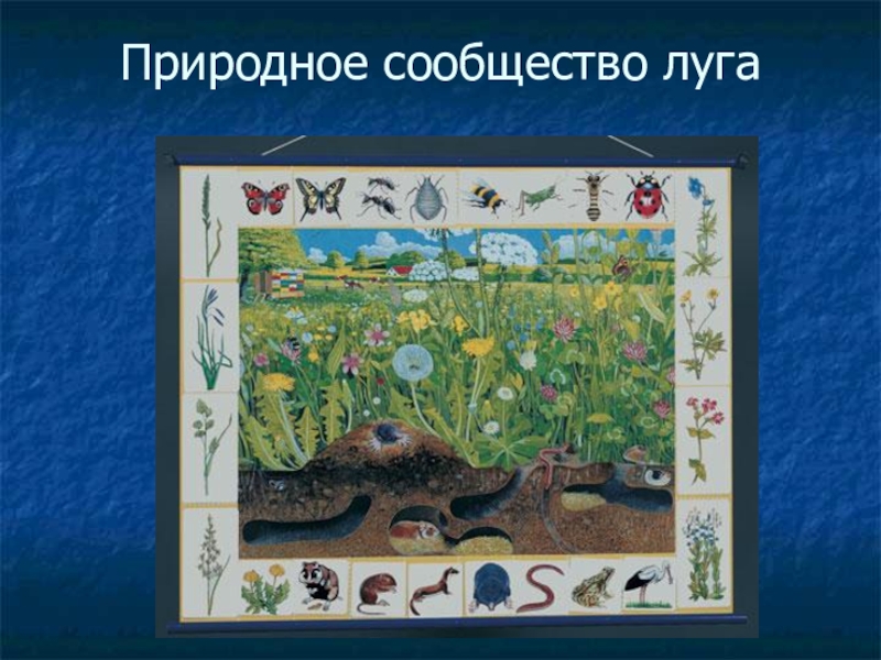 в луговом сообществе (особенно цепи питания), а также условия существования видов, характерных для разных луговых сообществ.