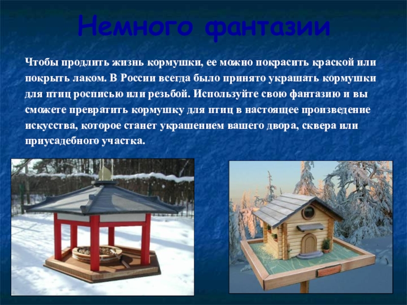 для птиц росписью или резьбой. Используйте свою фантазию и вы