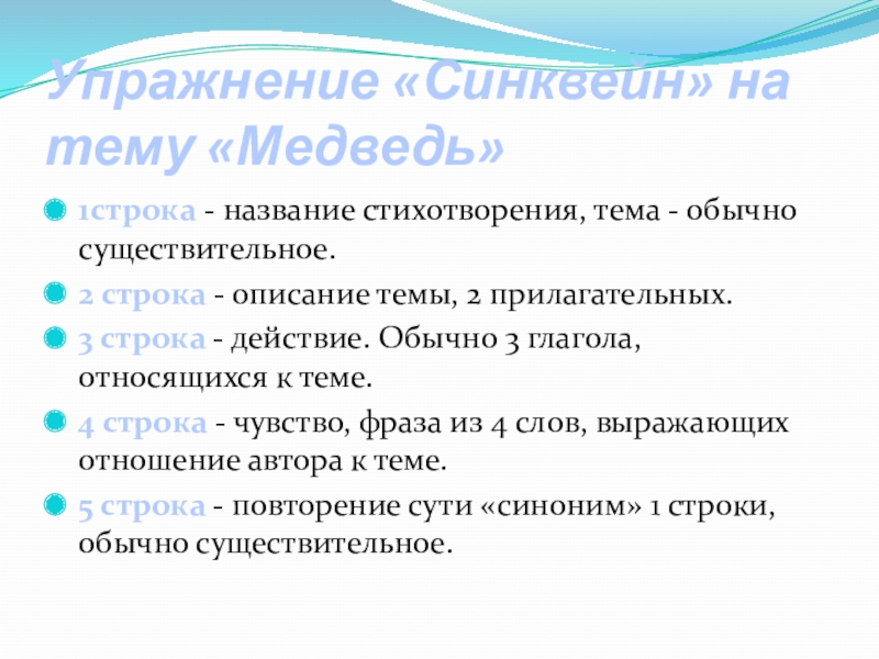 Слайд 16Упражнение «Синквейн» на тему «Медведь»