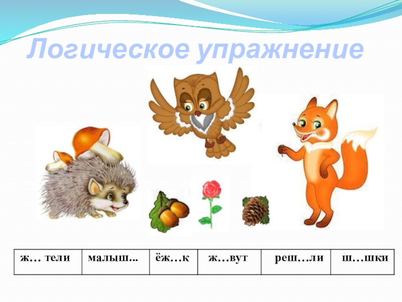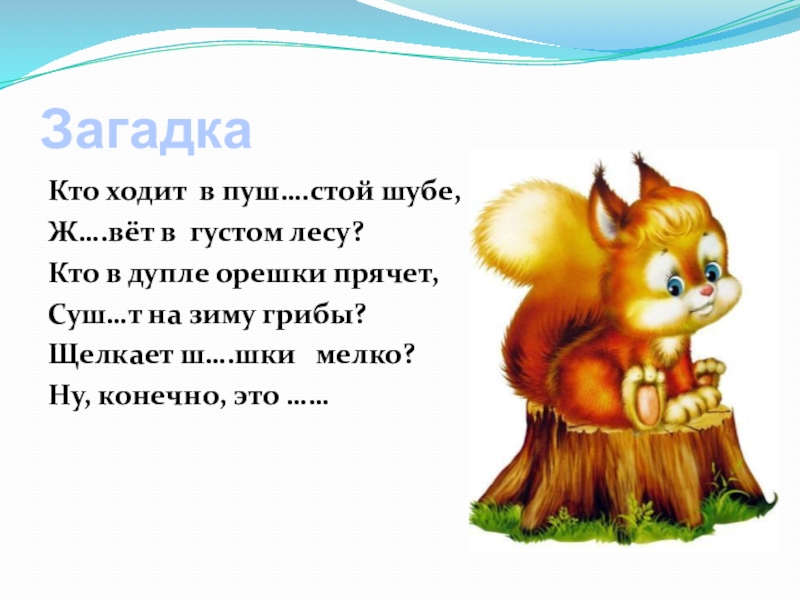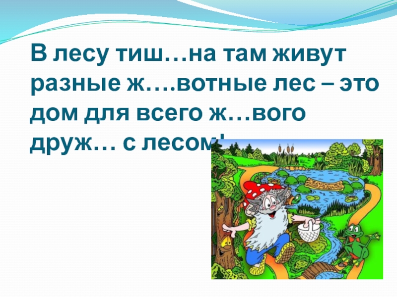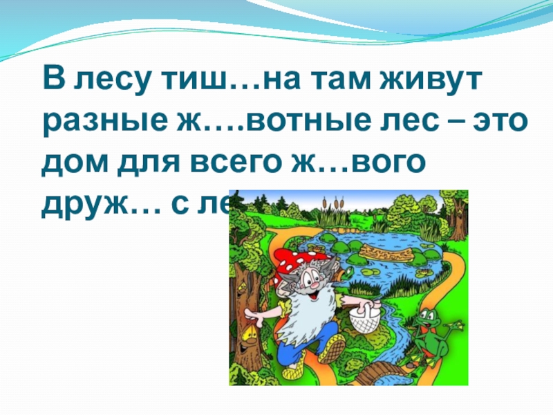 Слайд 7В лесу тиш…на там живут разные ж….вотные лес – это дом
